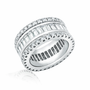 The L’Orée Éclat Baguette Eternity Band embodies refined brilliance with a seamless channel of baguette cut diamonds framed by rows of round pavé diamonds.