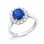 The L’Orée Bleu Fleur Ring captures timeless romance with a vivid blue sapphire at its center, radiating deep royal brilliance. Encircled by a delicate floral halo of round brilliant natural diamonds.