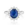 Specifications: 18K Gold, approx. 2.5 ctw Blue Sapphire, approx. 0.59 ctw VVS natural diamonds (E/F color)