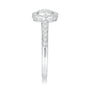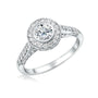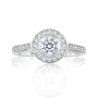 The L’Orée Bezel Set Round Cut Engagement Ring With Halo And Three Row Pavé Band available in platinum or gold, made to order with diamonds in all sizes and qualities.