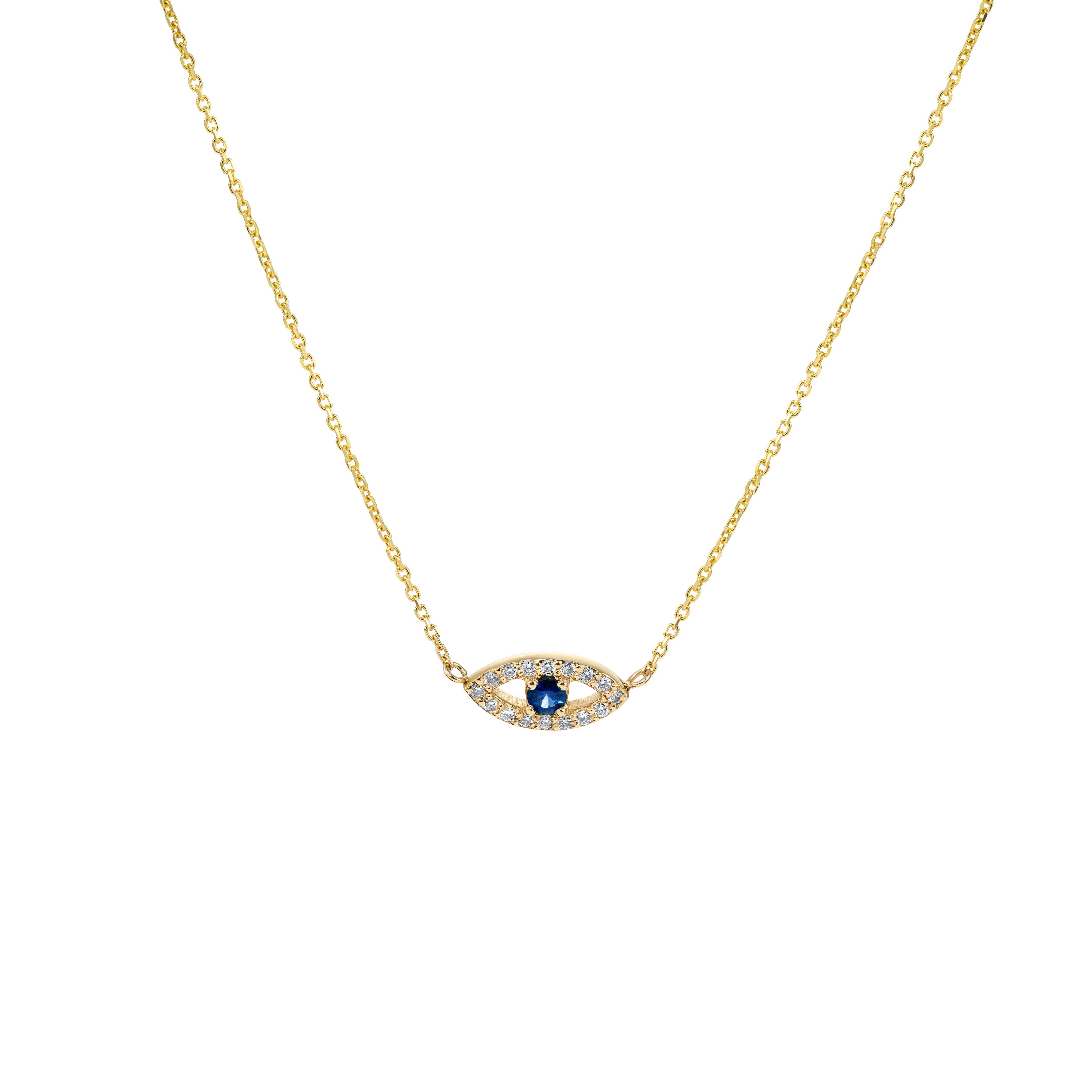 The L’Orée Evil Eye Pendant's sapphire’s deep blue symbolizes protection and wisdom, complemented by the natural diamonds' sparkle, blending tradition and elegance.