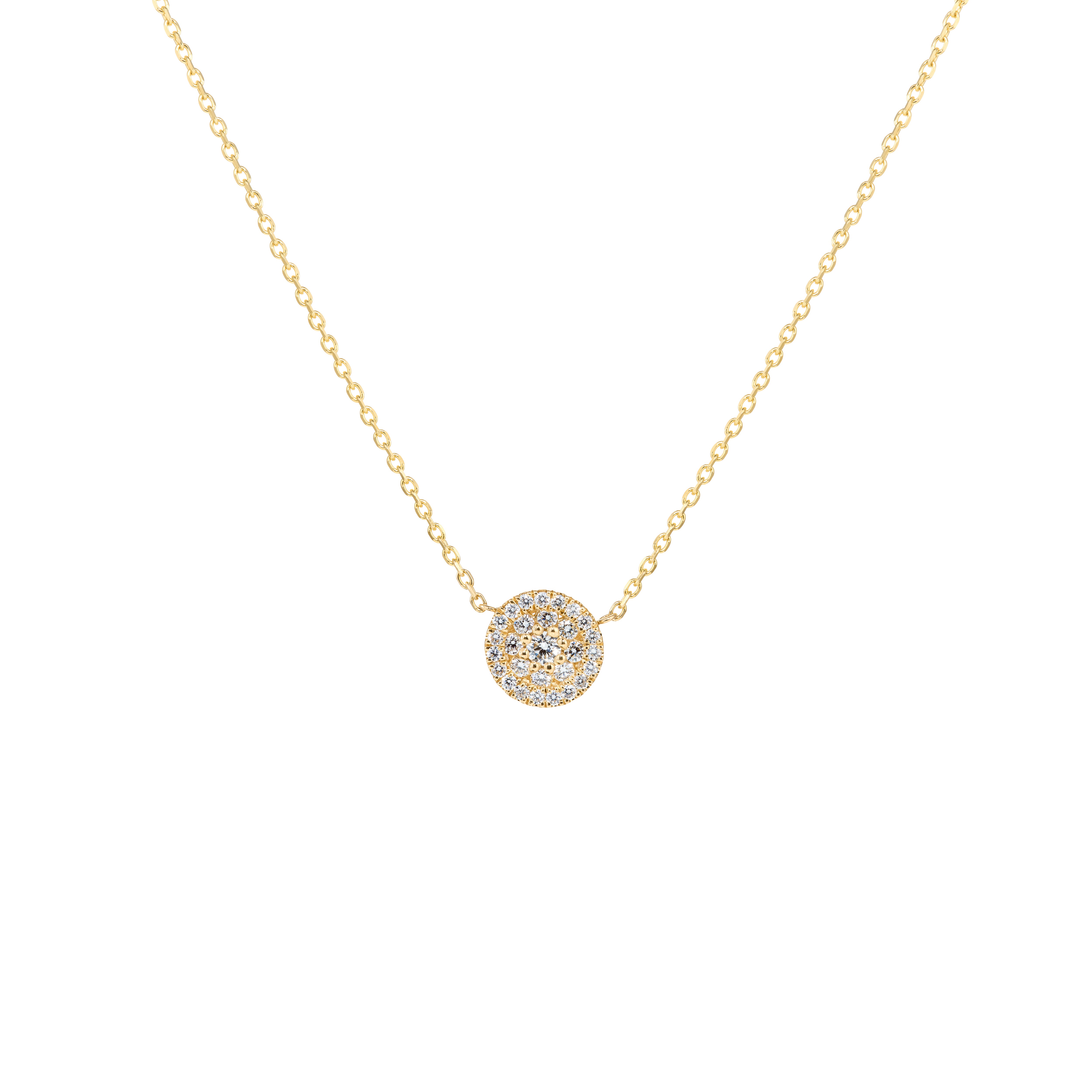 The L’Orée Pavé Diamond Disc Pendant is crafted with precision. The natural diamonds' brilliant facets create a captivating shimmer, enhanced by the warm tone of the gold, embodying quiet luxury.