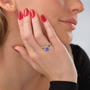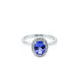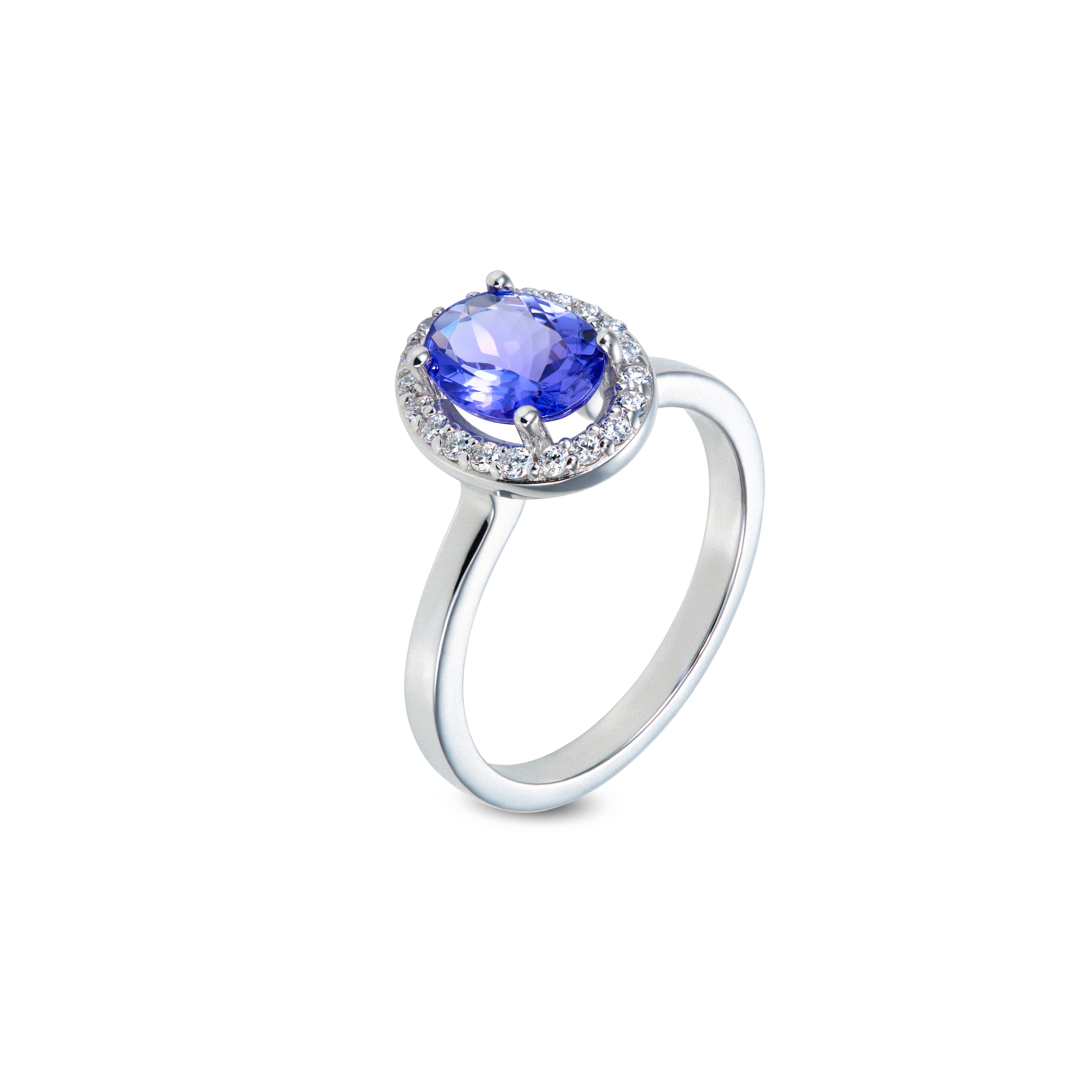 The L’Orée Tanzanite Halo Ring centers a stunning oval tanzanite encircled by natural diamonds in a delicate halo setting. The tanzanite’s deep violet-blue hue mesmerizes with every movement, complemented by the natural diamonds' brilliant sparkle.