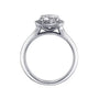 The L’Orée Round Cut Engagement Ring With Halo And Channel Set Band is available in platinum or gold, made to order with diamonds in all sizes and qualities.